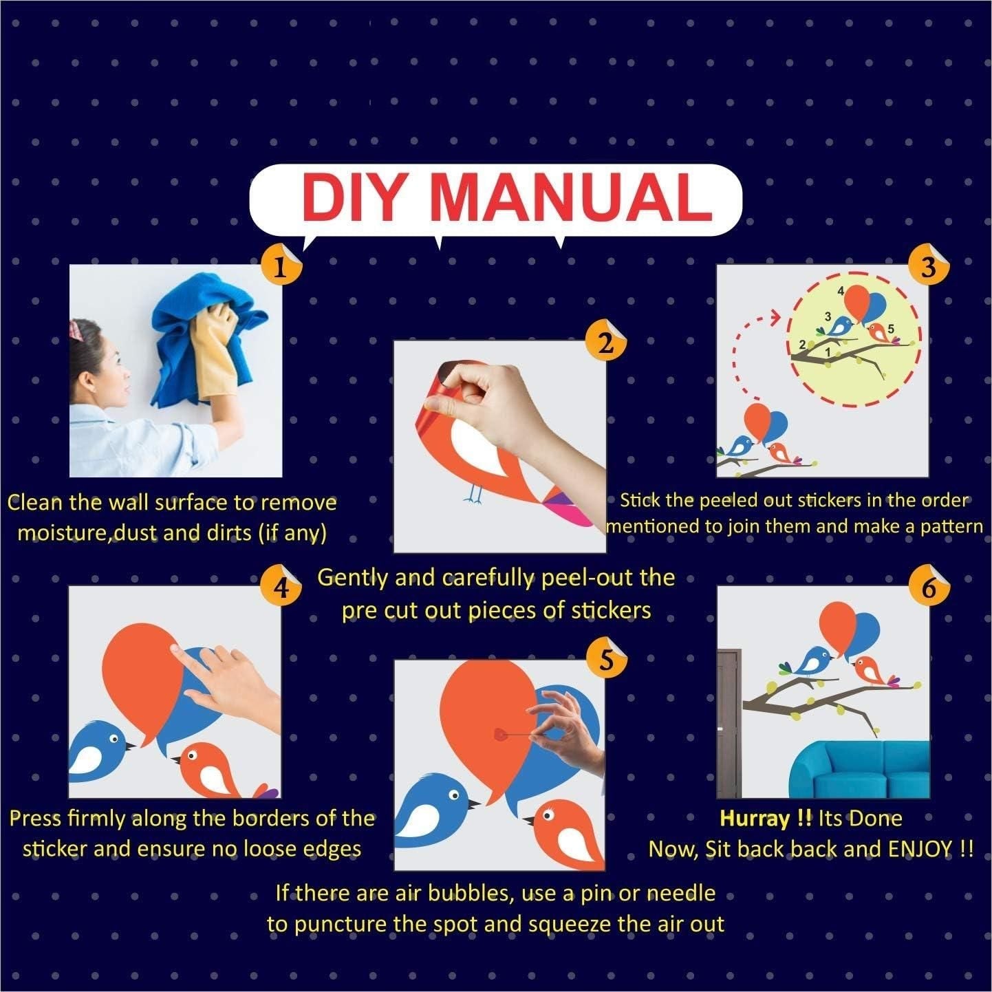 - Applicable surfaces: suitable well for smooth surfaces, such as kinds of walls, glass, mirrors, metal, wood, etc. It is also suitable for decorating your bedroom, living room or children's room, as well as for walls or windows.